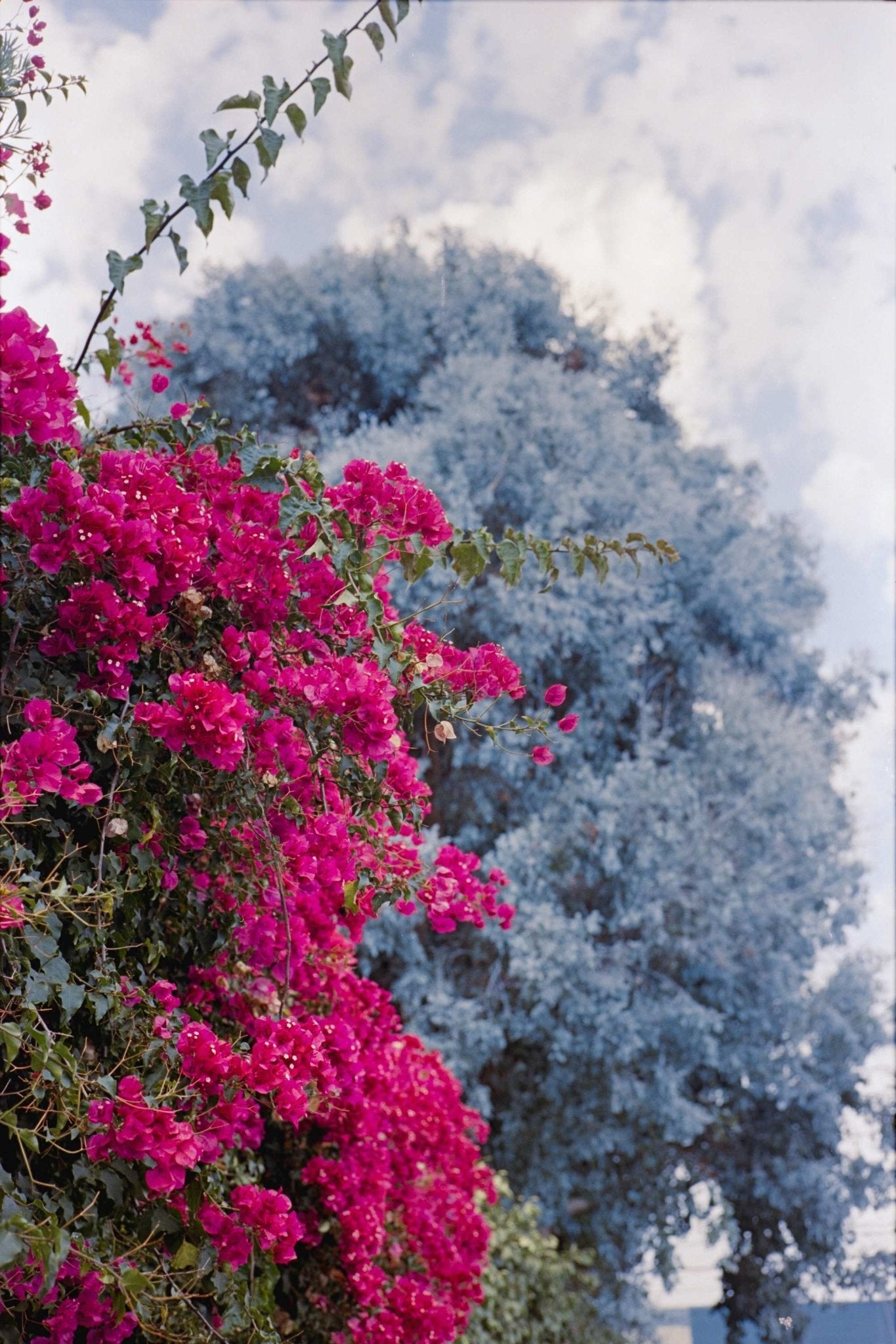 Vibrant bougainvillea meets pastel foliage in 'Flowers in Venice', where analog film turns a quiet street corner into pure California color. A breezy, blooming dose of nostalgia. Both clear and abstract all at once.