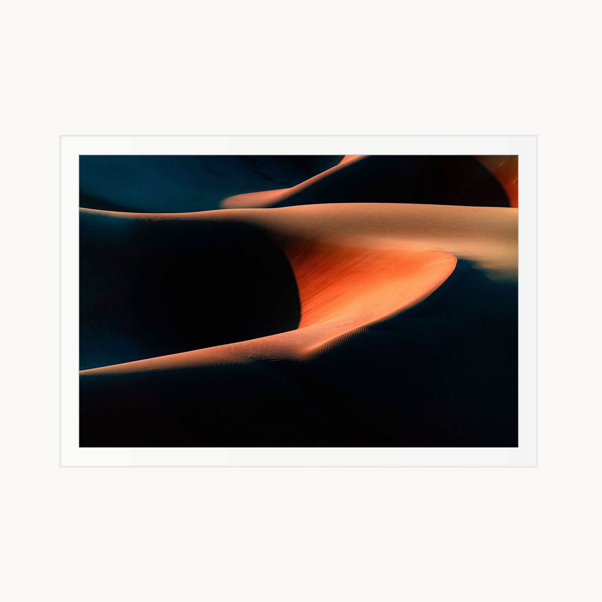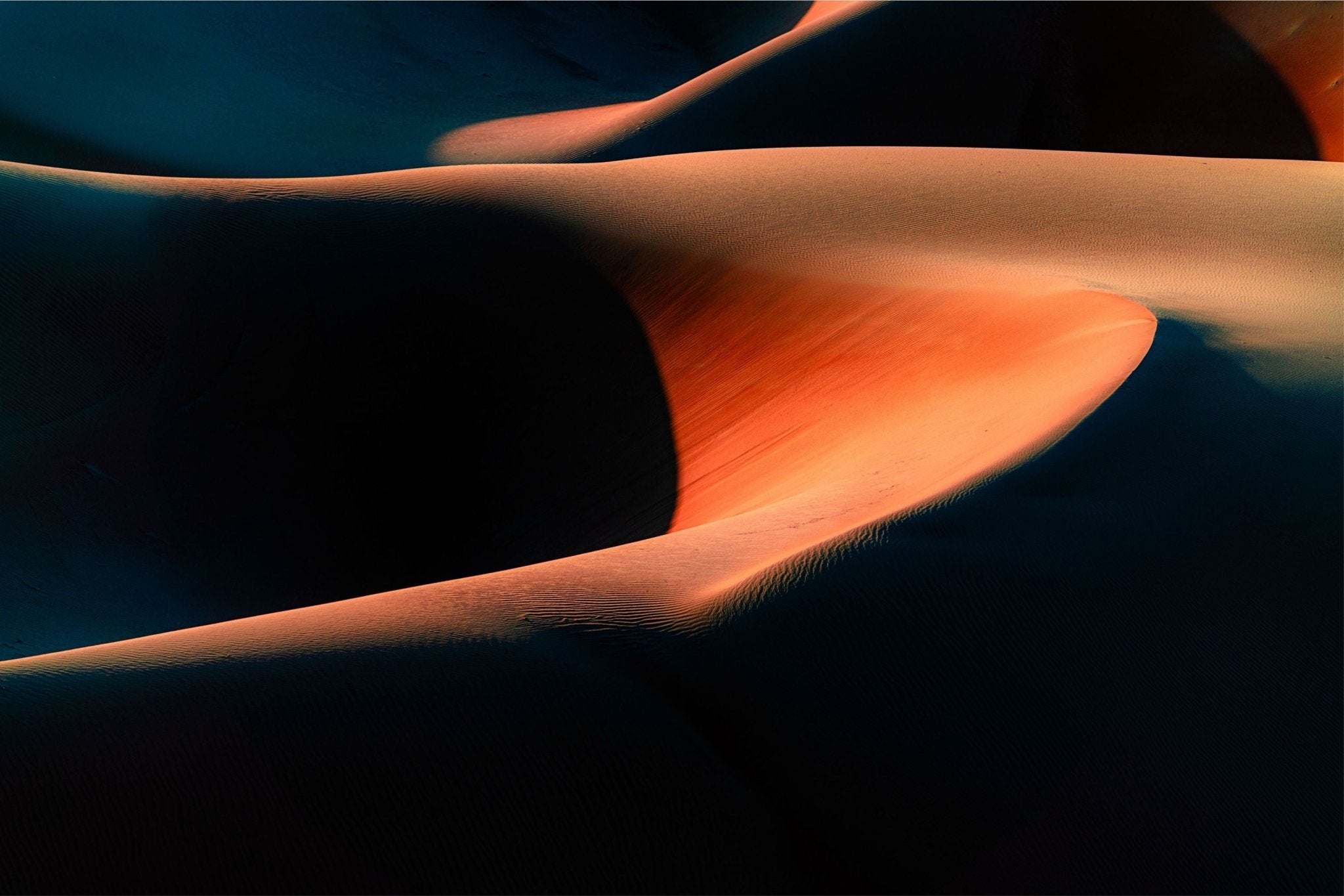 There are no footprints, no horizon line, no scale markers—just shape, texture, and contrast. The composition leans toward abstraction, letting the interplay of light and sand carry the frame.